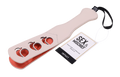 Get ready to add a fruity twist to your playful spanks with the Peaches ‘n CreaMe Peach Paddle! This petite yet powerful paddle is designed for a delightful mix of playful fun and saucy sensations. Crafted with faux leather and adorned with adorable peach-shaped cutouts, it's as charming as it is effective. The split tips offer a satisfying smack, while the peachy cutouts add a touch of whimsy with every swat at your partner’s peach. Perfectly sized for a teasing tap or a firmer spank, the Peaches ‘n CreaMe Peach Paddle is the ultimate accessory for a silly and flirty impact scene!