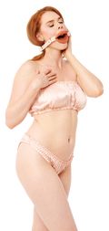 Say it without saying a word with the perfect blend of flirty fun and peachy play! Shaped like luscious lips in a tempting peach pearlescent hue, this silicone masterpiece is both inviting and seductive for oral play. The faux leather buckle ensures a secure fit while letting you are left speechless. Perfect for beginners or seasoned enthusiasts, the Peaches ‘n CreaMe Lips Gag adds a playful twist to your intimate moments. Explore a new flavor of kinky play and leave your bottom silently begging for more.