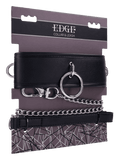 Command attention and obedience with the Edge® Collar and Leash, crafted for those who crave both comfort and control. This padded, thicker collar is designed for a secure yet comfortable fit, perfect for extended wear. The black faux leather is complemented by sleek silver metal hardware, including a large center ring for easy leash attachment. With two additional side connection points, this collar allows for more creative restraints and positions. Guide your submissive partner or make a bold statement—the Edge® Collar and Leash offers the ultimate tool for domination and versatility.