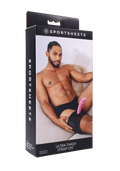 Discover new levels of intimacy. The Sportsheets ULTRA THIGH STRAP ON is built with a 6" wide band in soft, stretchy neoprene making it comfortable for all bodies, and set with a fully stitched and reinforced 1.75" (4.5 cm) nitrile O Ring that securely holds the compatible Sportsheets dildo of your choice.