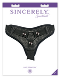 Take control with timeless elegance in the Lace Strap On from the Lace Collection by Sex & Mischief. Crafted from unique faux leather with a lace-like finish, this harness combines durability and sophistication for intense play without compromise. Designed with a sleek panel and sensual jock-style straps, this harness offers an irresistible fit that highlights your curves and ensures maximum comfort. With four points of adjustment and an interchangeable O Ring, it’s as versatile as it is stunning. Engage in penetrative play with a touch of sophistication and leave your partner captivated by both your presence and prowess.