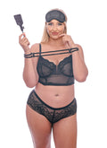Teach your bratty bottom how to properly submit with the perfectly curated Knotty Brat Kit! Keep them restrained with the included rope handcuffs in a stunning black with rose gold metal accents while you tap and tease every inch of their body with the accompanying mini crop. Punish them by taking away their sight with the included satin blindfold emblazoned with BRAT, and inflict them with your every naughty desire they deserve.
