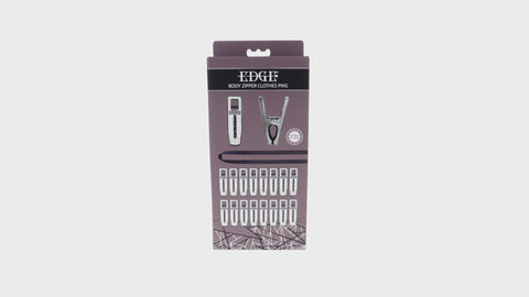 Submit to sensation. Suffer in sequence. The Edge® Body Zipper Clothes Pins turn control into artful cruelty. Sixteen silver-plated clamps await your command, ready to fasten to flesh and link through a heavy-duty 96-inch flat cord. Thread the cord through each clamp, then pull to zip, each motion tugging at the body in a slow, merciless wave of pressure that blurs the line between pain and pleasure. Silicone-lined interiors ensure a secure bite that holds until release. Finished in polished silver-plating with the Edge logo engraved on both sides, this set delivers portable, precision-built domination. Travel-friendly and ready for any scene.