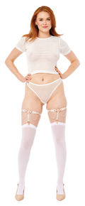 Sweet, sexy, and impossible to ignore, these luscious Peaches ‘N CreaMe Garters are made to turn heads and raise pulses. Crafted from soft faux leather and adorned with delicate pearl strands, a gleaming rose gold O Ring, and functional garter clips, they blend elegance with irresistible edge. Fully adjustable for a perfect fit, they wrap your thighs like a sensual secret, tempting anyone within view to take a closer look or a daring bite. The secure clips hold your thigh highs in place, letting you strut with confidence and command attention at every step. Seduce with style, tease with power, once they catch a glimpse, they’ll follow your lead without question.