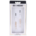 Indulge in the refined allure of our Pearl Nipple Ties - a captivating accessory that adds a touch of sophistication to any naughty occasion. With the pearls suspended by clear ties, they appear to effortlessly float on the body, creating a mesmerizing and ethereal effect. Let the Pearl Nipple Ties adorn your body like precious jewels and easily adjust the ties to add pressure and a touch of luxury and allure to your most cherished moments.